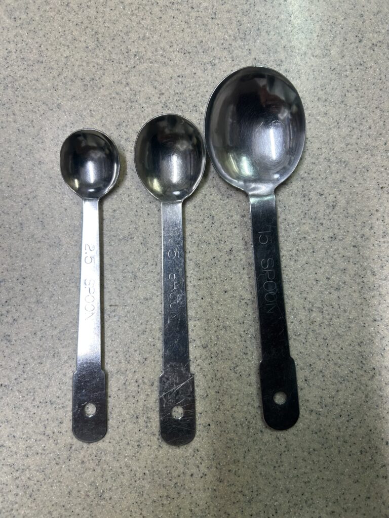 計量スプーンは家庭によって本当にバラバラなので、「小さじ=5ml」「大さじ=15ml」を覚えておきましょう!